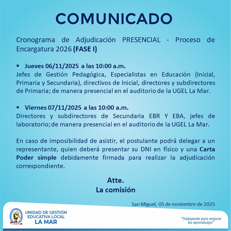 Escrito en 04 Noviembre 2025. Visto: 3 Convoca a Asistencia técnica “Orientaciones para la II evaluación de habilidades socioemocionales - inicio y factores de riesgo – alto riesgo”. Oficio Múltiple N° 263-2025-UGEL-LM