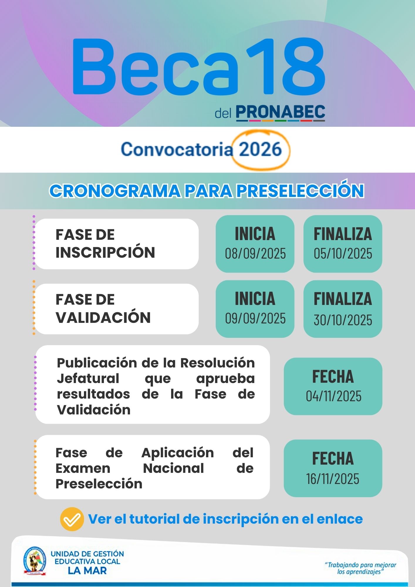 Escrito en 19 Septiembre 2025. Visto: 74 VER TUTORIAL AQUÍ:https://www.youtube.com/watch?v=xwuvpsCQv-w MAYOR INFORMACIÓN AQUÍ: https://www.pronabec.gob.pe/beca-18/ < Anterior Siguiente >