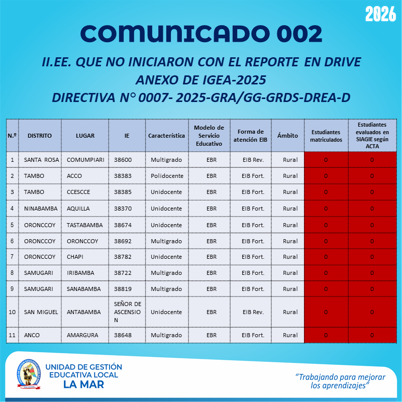 Atención instituciones educativas de la lista, iniciar con reporte en Drive del Anexo IGEA-2025