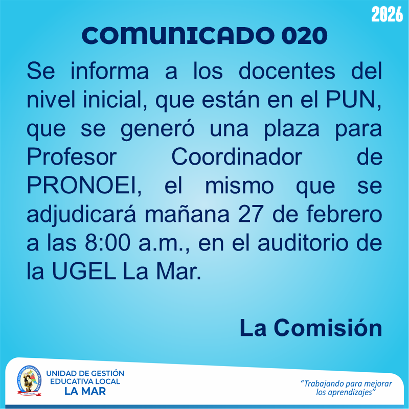 Convoca a la asistencia del I Taller de Fortalecimiento Pedagógico en Planificación Curricular, dirigido a los directivos de las II.EE. de E.B.R. de la UGEL La Mar 2026.