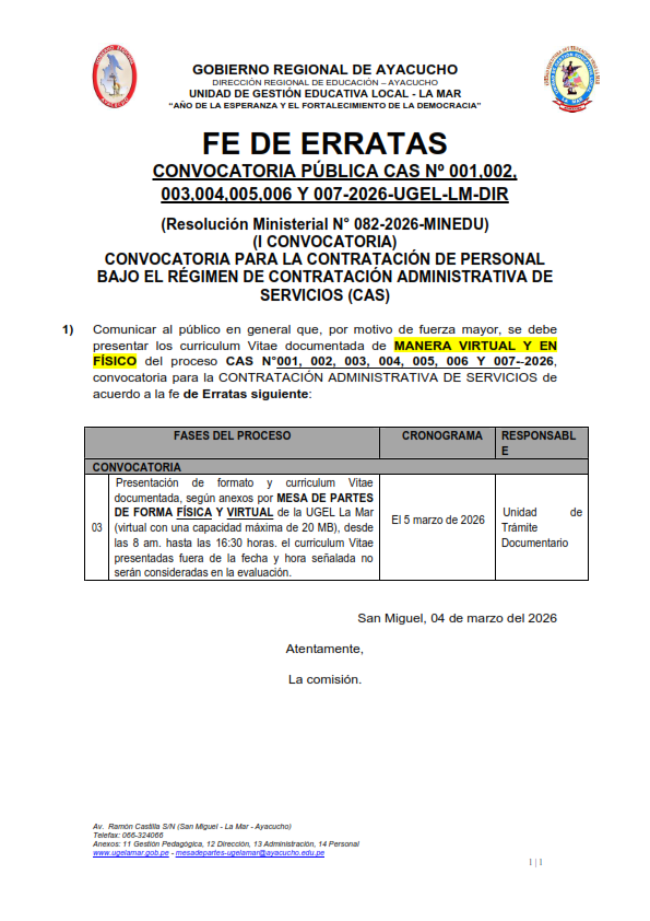 ✅Revisa las bases en www.ugelamar.edu.pe (Convocatorias CAS)