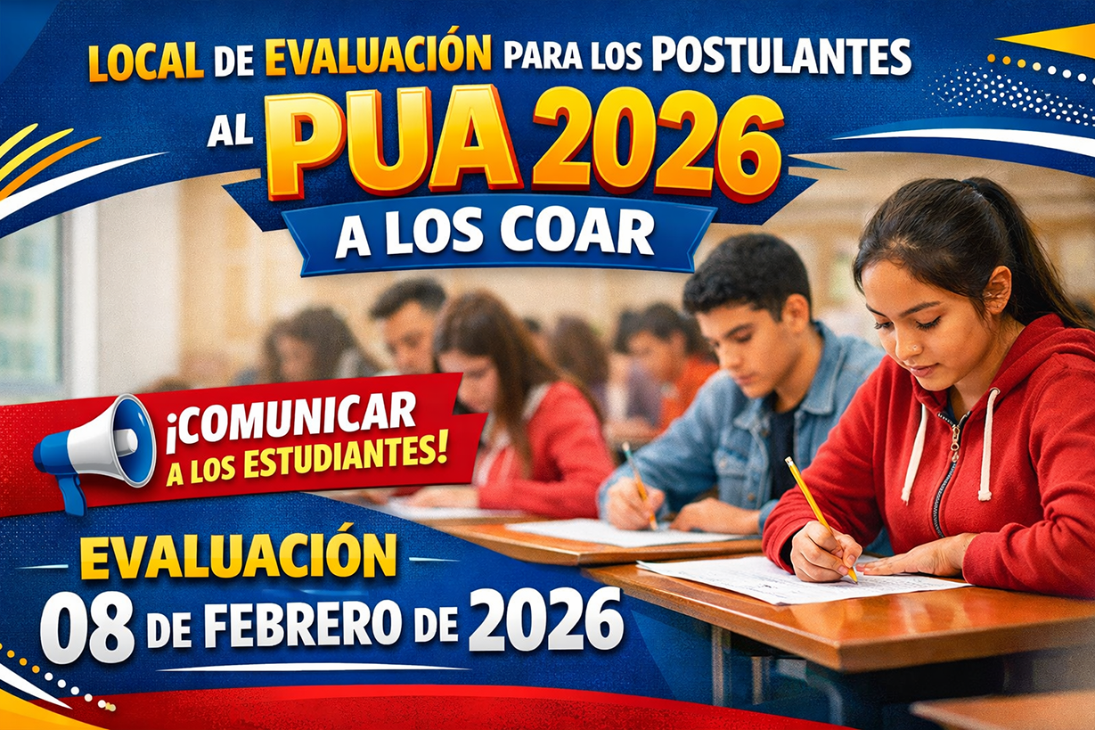 Se comunica a los estudiantes que participarán en el Proceso Único de Admisión (PUA) 2026 a los Colegios de Alto Rendimiento (COAR), la información sobre el local de evaluación.