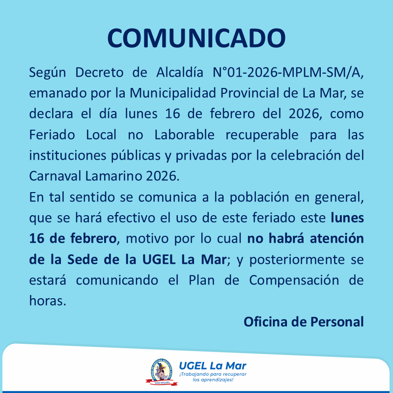 👉Por tal motivo, no habrá atención en la Sede de la UGEL La Mar durante esa fecha.
