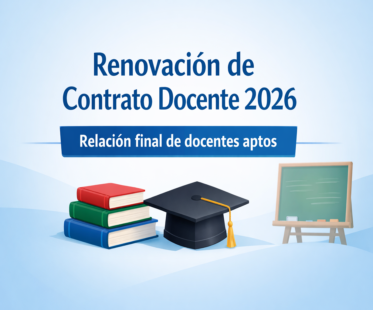Escrito en 04 Febrero 2026. Visto: 44 Relación final de docentes aptos para Renovación de Contrato Docente 2026 Ver detalles: < Anterior Siguiente >